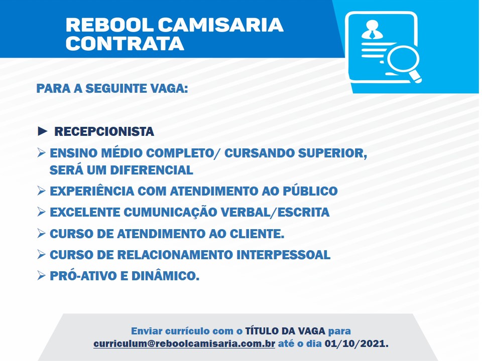 REBOOL CAMISARIA ESTÁ RECRUTANDO PROFISSIONAIS PARA COMPOR SEU QUADRO DE FUNCIONÁRIOS: