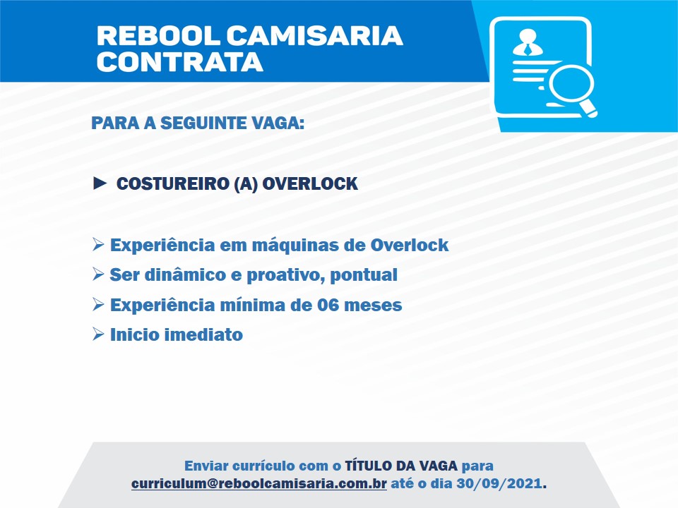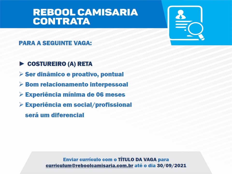 REBOOL CAMISARIA ESTÁ RECRUTANDO PROFISSIONAIS PARA COMPOR SEU QUADRO DE FUNCIONÁRIOS: