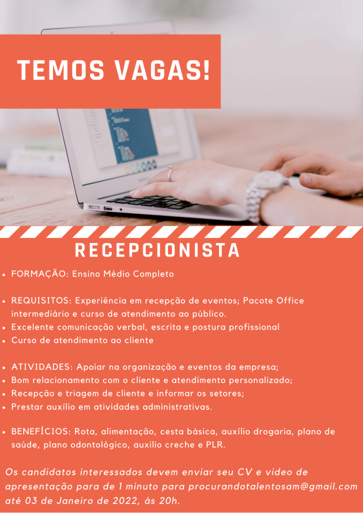 Mais informações sobre a vaga, somente por e-mail com os contratantes. Boa sorte !!!🍀