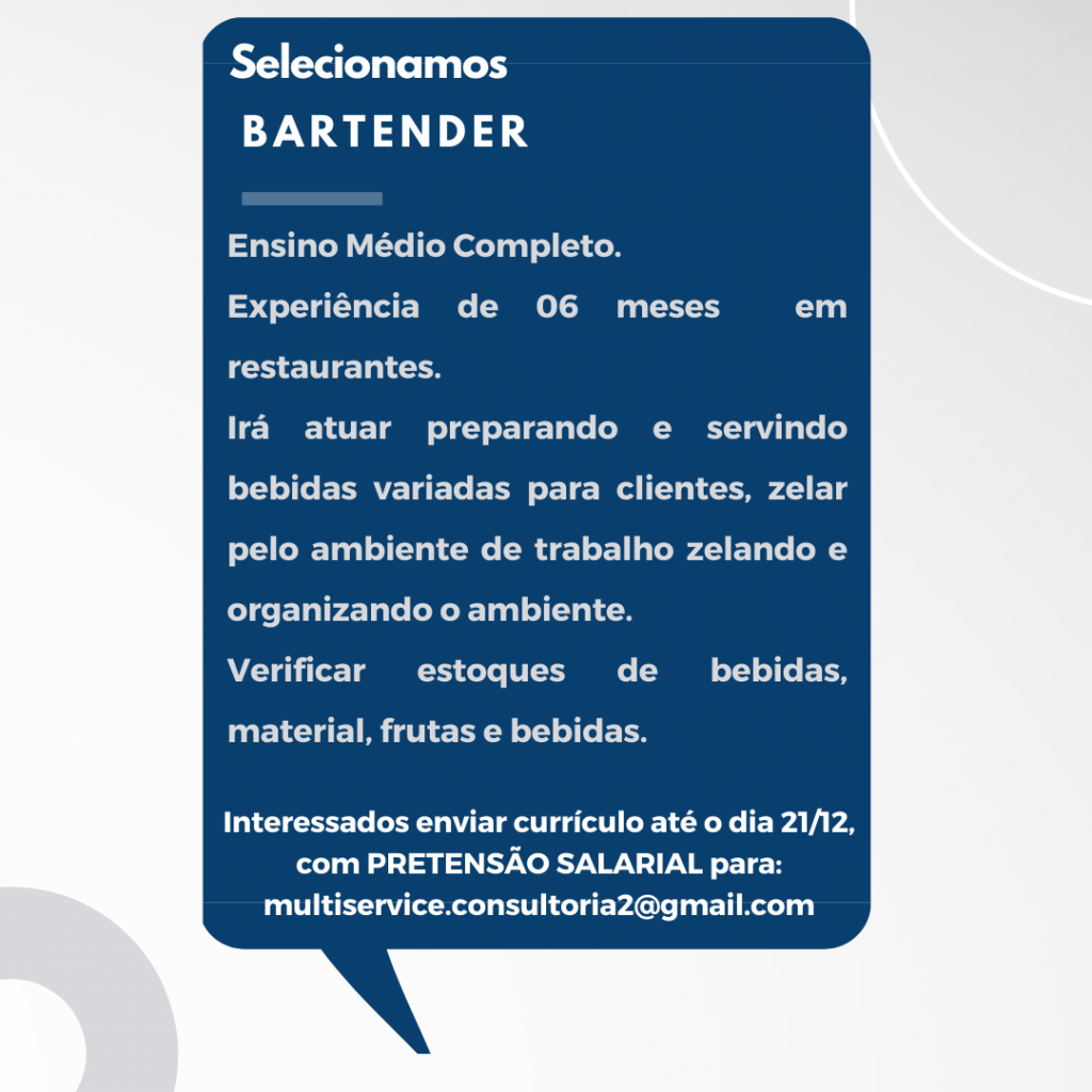 As vagas anunciadas e disponibilizadas neste site são repassadas por responsabilidade da empresa ou representante do RH. Não possuímos quaisquer vínculos com a empresa ou o anunciante. Temos o único objetivo de repassar para a população o benefício de visitar gratuitamente o nosso site, com o intuito de alcançarem o tão sonhado emprego.