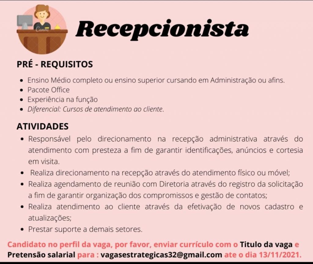 Mais informações sobre a vaga, somente por e-mail com os contratantes. Boa sorte !!!🍀