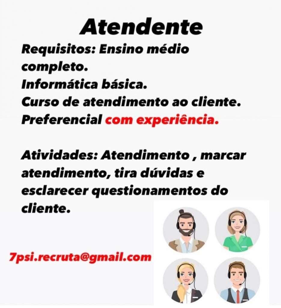 As vagas anunciadas e disponibilizadas neste site são repassadas por responsabilidade da empresa ou representante do RH. Não possuímos quaisquer vínculos com a empresa ou o anunciante. Temos o único objetivo de repassar para a população o benefício de visitar gratuitamente o nosso site, com o intuito de alcançarem o tão sonhado emprego.