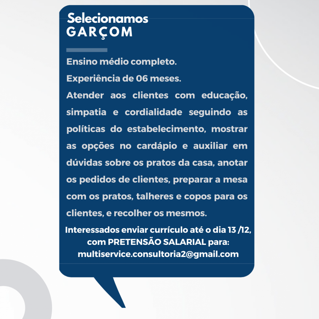 Recursos humanos multiservice está recrutando novos profissionais,: