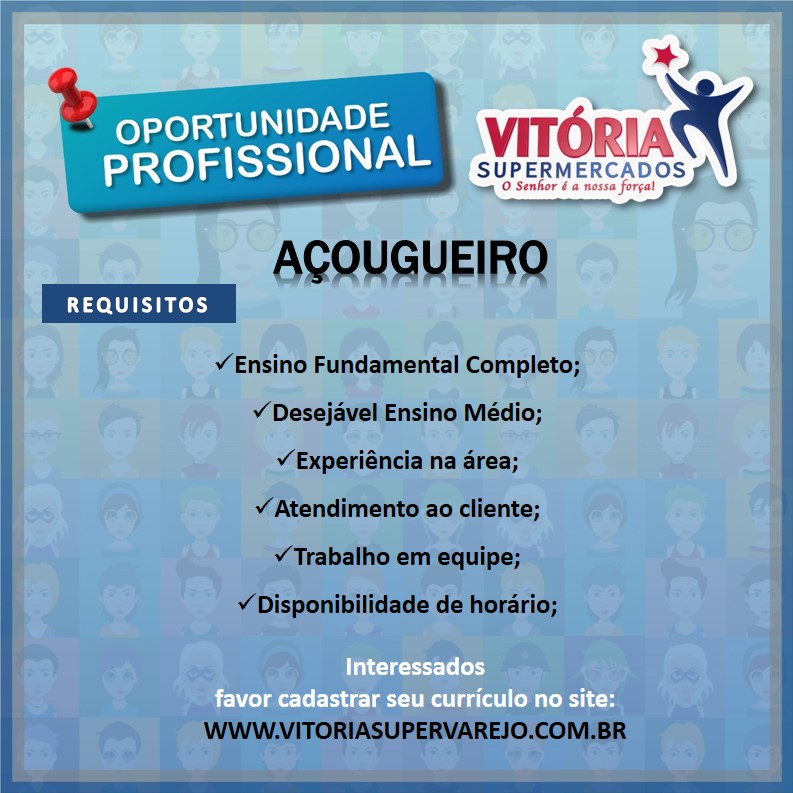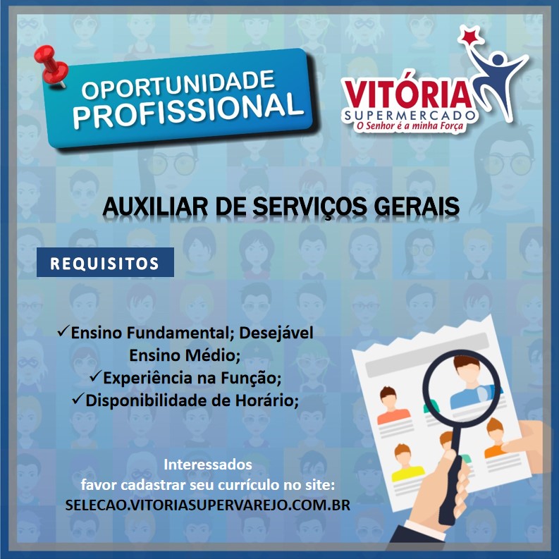 As vagas anunciadas e disponibilizadas neste site são repassadas por responsabilidade da empresa ou representante do RH. Não possuímos quaisquer vínculos com a empresa ou o anunciante. Temos o único objetivo de repassar para a população o benefício de visitar gratuitamente o nosso site, com o intuito de alcançarem o tão sonhado emprego.
