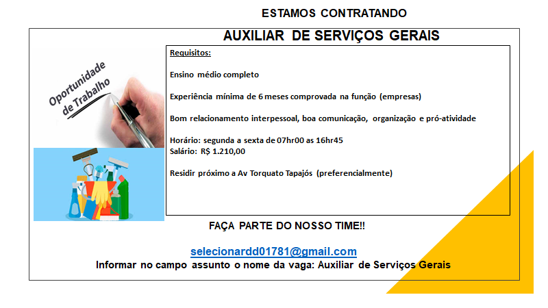 Mais informações sobre a vaga, somente por e-mail com os contratantes. Boa sorte !!!🍀