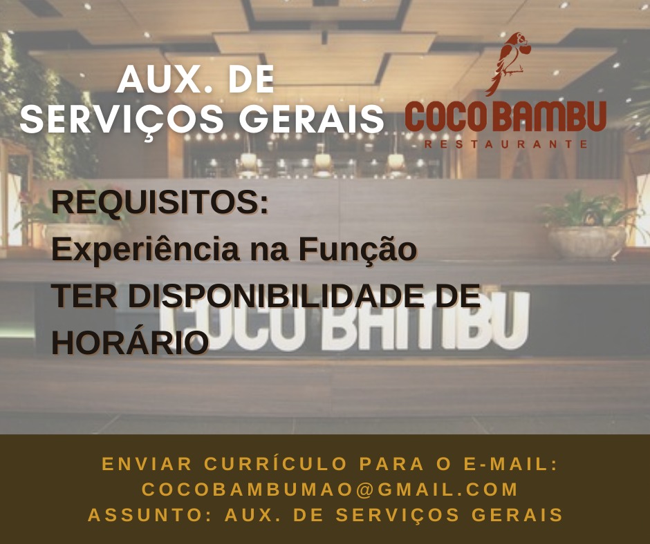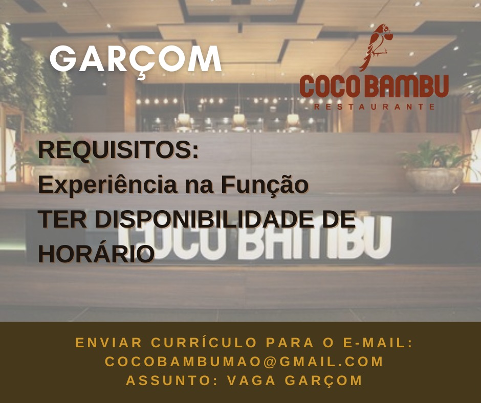 Restaurante Coco bambú está recrutando novos profissionais para compor seu quadro de funcionários… – Emprego Day – AM