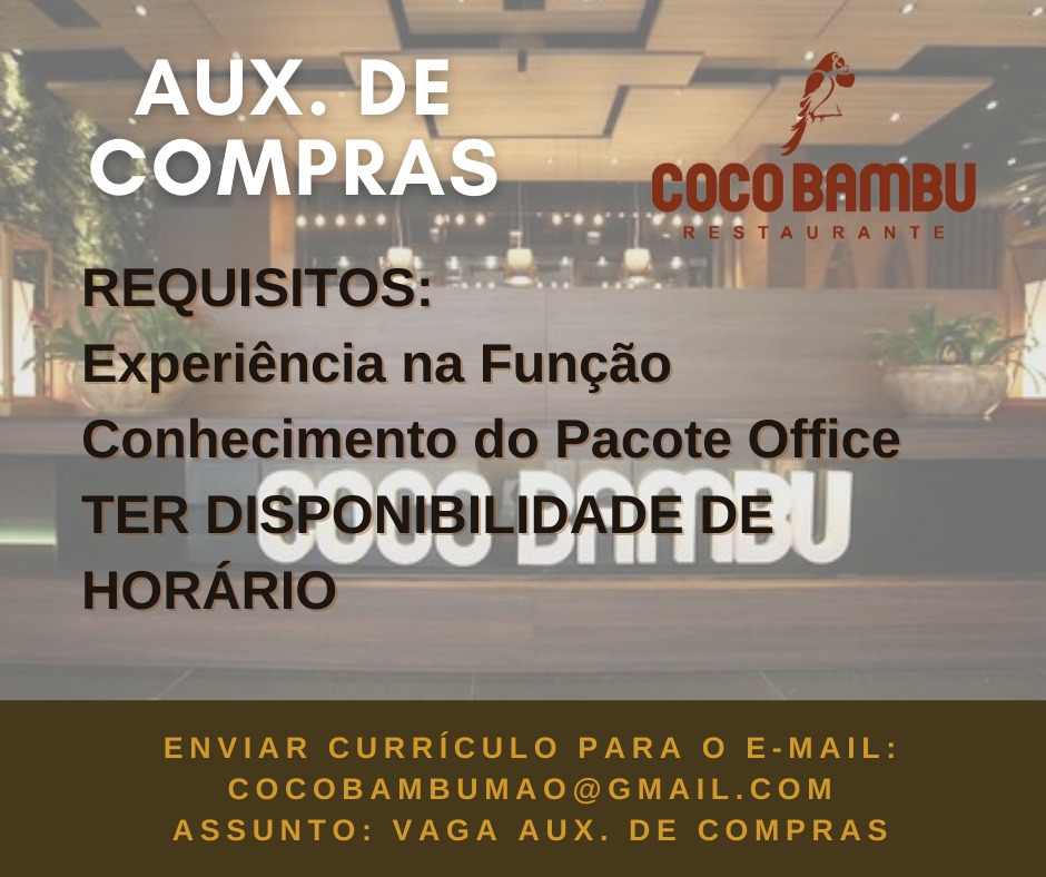Restaurante Coco bambú está recrutando novos profissionais para compor seu quadro de funcionários…