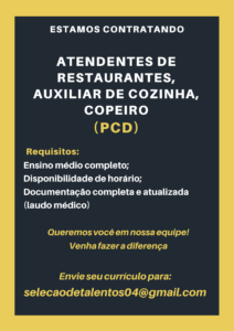 As vagas anunciadas e disponibilizadas neste site são repassadas por responsabilidade da empresa ou representante do RH. Não possuímos quaisquer vínculos com a empresa ou o anunciante. Temos o único objetivo de repassar para a população o benefício de visitar gratuitamente o nosso site, com o intuito de alcançarem o tão sonhado emprego.