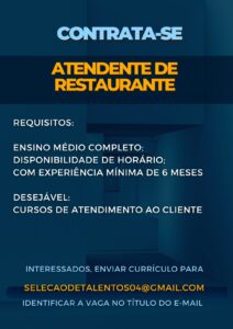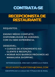 Restaurante está recrutando novos profissionais para compor seu quadro de funcionários: – Emprego Day – AM