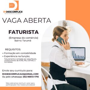 RH DESCOMPLICA ESTÁ RECRUTANDO PROFISSIONAIS PARA A SEGUINTE FUNÇAO: – Emprego Day – AM