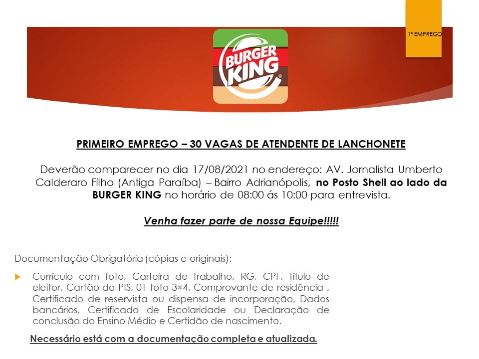 EMPREGO BURGER KING