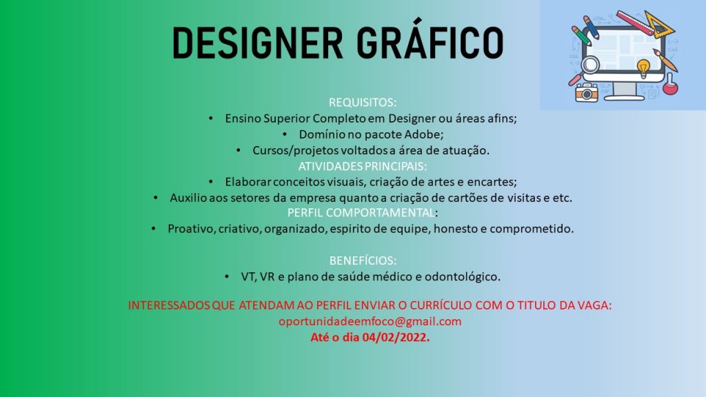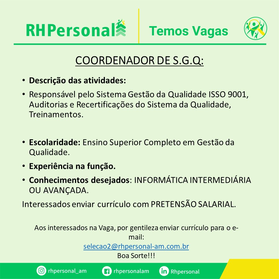 Mais informações sobre a vaga, somente por e-mail com os contratantes. Boa sorte !!!🍀