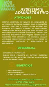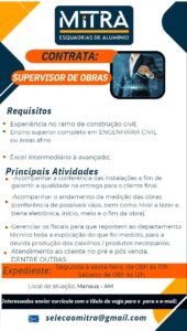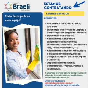 As vagas anunciadas e disponibilizadas neste site são repassadas por responsabilidade da empresa ou representante do RH. Não possuímos quaisquer vínculos com a empresa ou o anunciante. Temos o único objetivo de repassar para a população o benefício de visitar gratuitamente o nosso site, com o intuito de alcançarem o tão sonhado emprego.