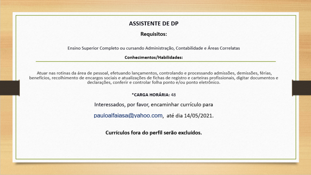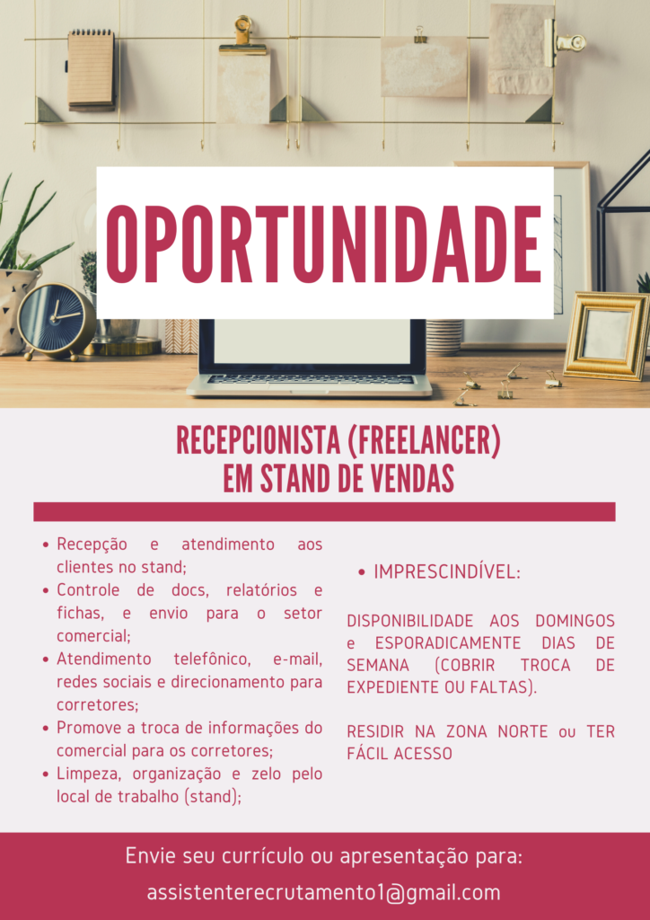 Mais informações sobre a vaga, somente por e-mail com os contratantes. Boa sorte !!!🍀