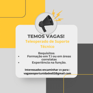 As vagas anunciadas e disponibilizadas neste site são repassadas por responsabilidade da empresa ou representante do RH. Não possuímos quaisquer vínculos com a empresa ou o anunciante. Temos o único objetivo de repassar para a população o benefício de visitar gratuitamente o nosso site, com o intuito de alcançarem o tão sonhado emprego.