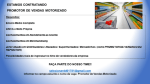 As vagas anunciadas e disponibilizadas neste site são repassadas por responsabilidade da empresa ou representante do RH. Não possuímos quaisquer vínculos com a empresa ou o anunciante. Temos o único objetivo de repassar para a população o benefício de visitar gratuitamente o nosso site, com o intuito de alcançarem o tão sonhado emprego.