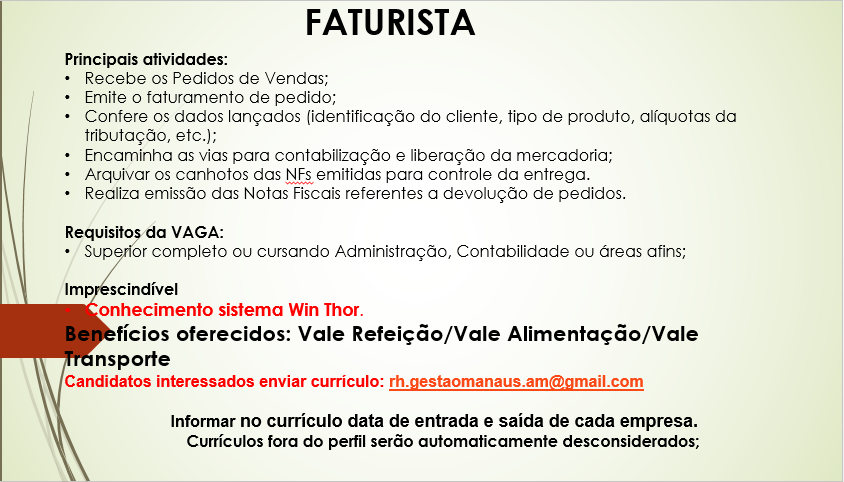 Mais informações sobre a vaga, somente por e-mail com os contratantes. Boa sorte !!!🍀