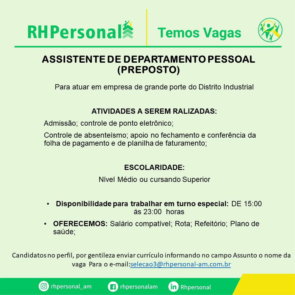 São diversas vagas disponíveis para hoje.. – Emprego Day – AM
