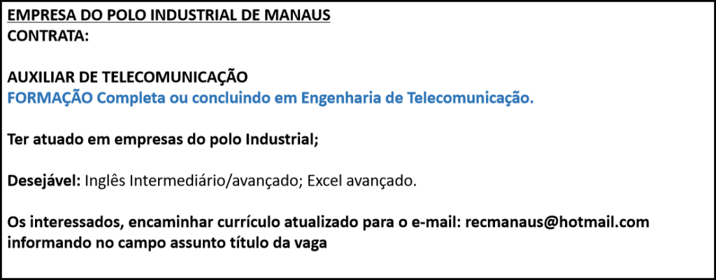 São diversas vagas disponíveis para hoje confira as Oportunidades. – Emprego Day – AM