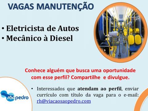 As vagas anunciadas e disponibilizadas neste site são repassadas por responsabilidade da empresa ou representante do RH. Não possuímos quaisquer vínculos com a empresa ou o anunciante. Temos o único objetivo de repassar para a população o benefício de visitar gratuitamente o nosso site, com o intuito de alcançarem o tão sonhado emprego.