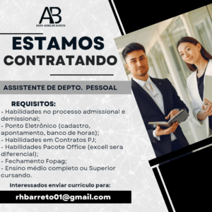 As vagas anunciadas e disponibilizadas neste site são repassadas por responsabilidade da empresa ou representante do RH. Não possuímos quaisquer vínculos com a empresa ou o anunciante. Temos o único objetivo de repassar para a população o benefício de visitar gratuitamente o nosso site, com o intuito de alcançarem o tão sonhado emprego.