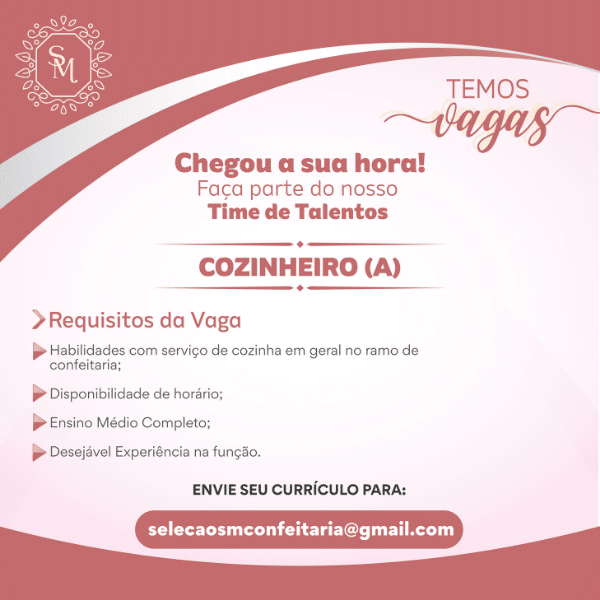 São diversas vagas disponíveis para hoje confira e participe da seleção!!!
