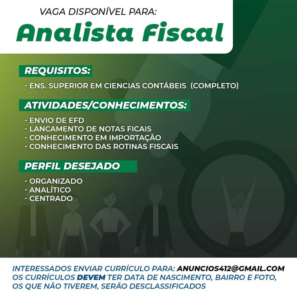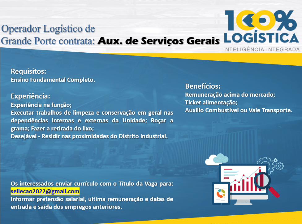 As vagas anunciadas e disponibilizadas neste site são repassadas por responsabilidade da empresa ou representante do RH. Não possuímos quaisquer vínculos com a empresa ou o anunciante. Temos o único objetivo de repassar para a população o benefício de visitar gratuitamente o nosso site, com o intuito de alcançarem o tão sonhado emprego.