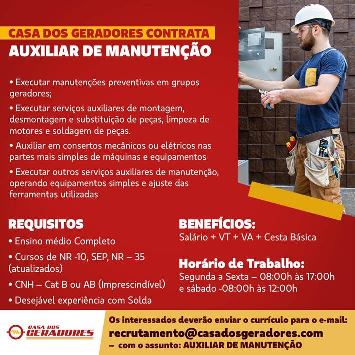Mais informações sobre a vaga, somente por e-mail com os contratantes. Boa sorte !!!🍀