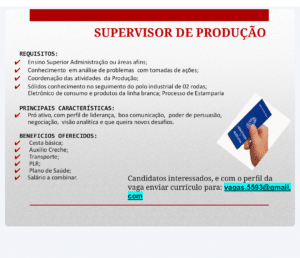 As vagas anunciadas e disponibilizadas neste site são repassadas por responsabilidade da empresa ou representante do RH. Não possuímos quaisquer vínculos com a empresa ou o anunciante. Temos o único objetivo de repassar para a população o benefício de visitar gratuitamente o nosso site, com o intuito de alcançarem o tão sonhado emprego.