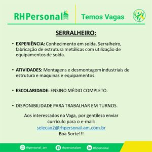 São diversas vagas disponíveis para hoje confira e participe da seleção!!! – Emprego Day – AM