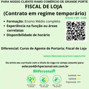 SÃO DIVERSAS VAGAS DISPONÍVEIS PARA HOJE, CONFIRA E PARTICIPE DA SELEÇÃO: – Emprego Day – AM