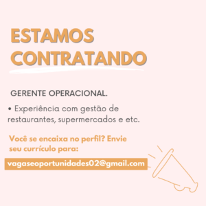 As vagas anunciadas e disponibilizadas neste site são repassadas por responsabilidade da empresa ou representante do RH. Não possuímos quaisquer vínculos com a empresa ou o anunciante. Temos o único objetivo de repassar para a população o benefício de visitar gratuitamente o nosso site, com o intuito de alcançarem o tão sonhado emprego.