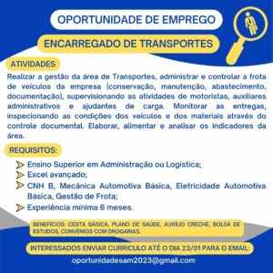 As vagas anunciadas e disponibilizadas neste site são repassadas por responsabilidade da empresa ou representante do RH. Não possuímos quaisquer vínculos com a empresa ou o anunciante. Temos o único objetivo de repassar para a população o benefício de visitar gratuitamente o nosso site, com o intuito de alcançarem o tão sonhado emprego.