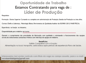 As vagas anunciadas e disponibilizadas neste site são repassadas por responsabilidade da empresa ou representante do RH. Não possuímos quaisquer vínculos com a empresa ou o anunciante. Temos o único objetivo de repassar para a população o benefício de visitar gratuitamente o nosso site, com o intuito de alcançarem o tão sonhado emprego.