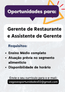 São diversas vagas disponíveis para hoje, confira e participe da seleção: – Emprego Day – AM