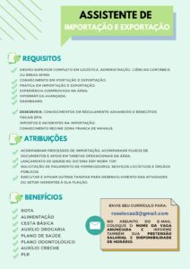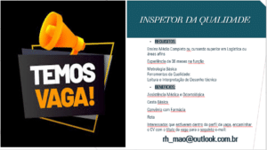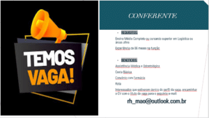 As vagas anunciadas e disponibilizadas neste site são repassadas por responsabilidade da empresa ou representante do RH. Não possuímos quaisquer vínculos com a empresa ou o anunciante. Temos o único objetivo de repassar para a população o benefício de visitar gratuitamente o nosso site, com o intuito de alcançarem o tão sonhado emprego.