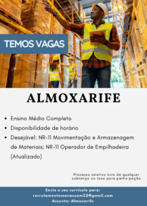 São diversas Vagas disponíveis para hoje, confira e participe da seleção: – Emprego Day – AM