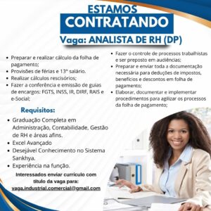 São diversas vagas disponíveis para hoje confira e participe da seleção!!!!