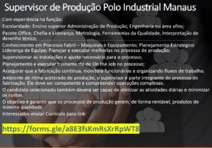 As vagas anunciadas e disponibilizadas neste site são repassadas por responsabilidade da empresa ou representante do RH. Não possuímos quaisquer vínculos com a empresa ou o anunciante. Temos o único objetivo de repassar para a população o benefício de visitar gratuitamente o nosso site, com o intuito de alcançarem o tão sonhado emprego.