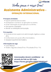 As vagas anunciadas e disponibilizadas neste site são repassadas por responsabilidade da empresa ou representante do RH. Não possuímos quaisquer vínculos com a empresa ou o anunciante. Temos o único objetivo de repassar para a população o benefício de visitar gratuitamente o nosso site, com o intuito de alcançarem o tão sonhado emprego.