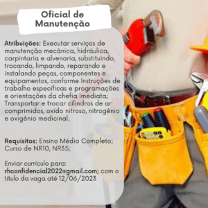 As vagas anunciadas e disponibilizadas neste site são repassadas por responsabilidade da empresa ou representante do RH. Não possuímos quaisquer vínculos com a empresa ou o anunciante. Temos o único objetivo de repassar para a população o benefício de visitar gratuitamente o nosso site, com o intuito de alcançarem o tão sonhado emprego.