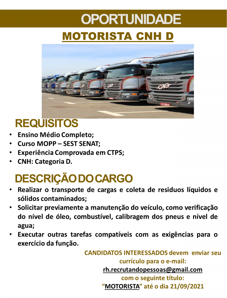 São diversas vagas disponíveis para hoje confira e participe da seleção!!!