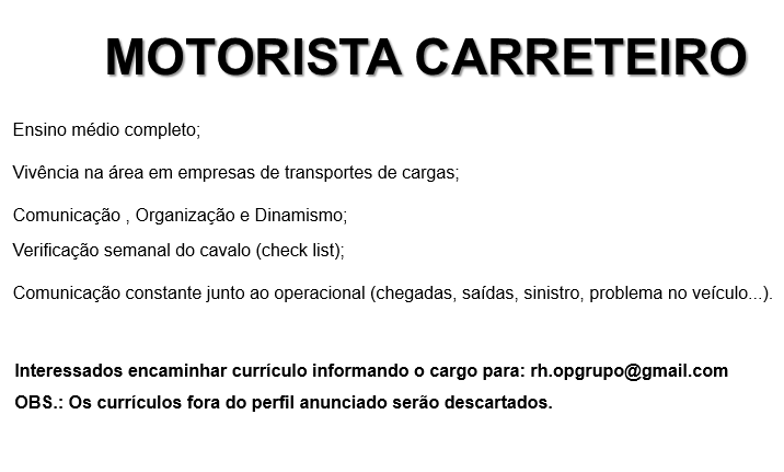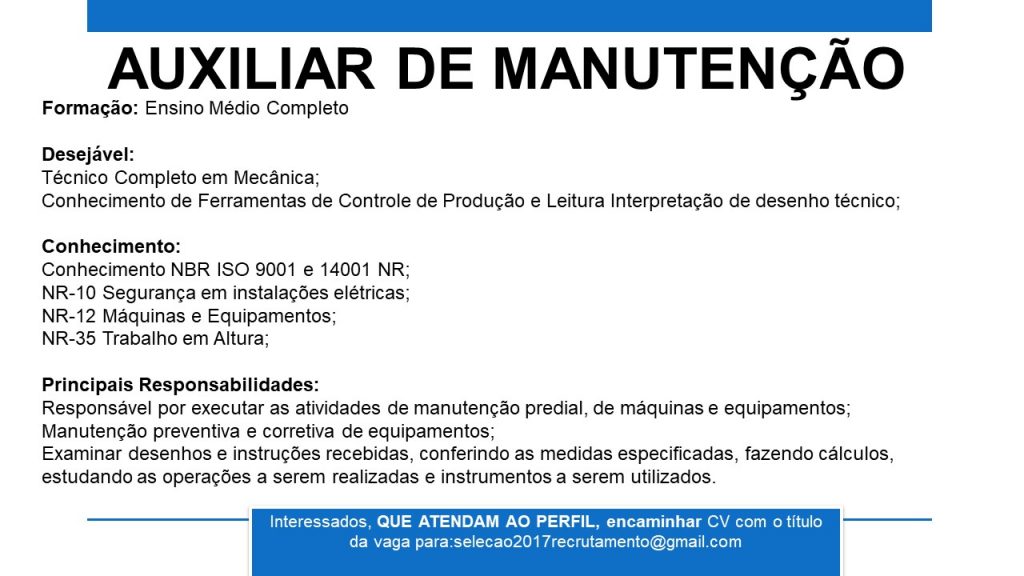 Mais informações sobre a vaga, somente por e-mail com os contratantes. Boa sorte !!!🍀