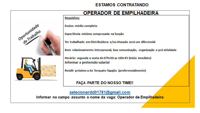 Mais informações sobre a vaga, somente por e-mail com os contratantes. Boa sorte !!!🍀