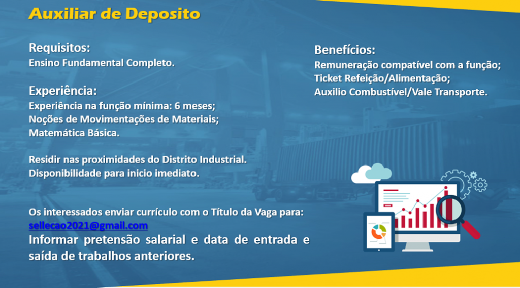As vagas anunciadas e disponibilizadas neste site são repassadas por responsabilidade da empresa ou representante do RH. Não possuímos quaisquer vínculos com a empresa ou o anunciante. Temos o único objetivo de repassar para a população o benefício de visitar gratuitamente o nosso site, com o intuito de alcançarem o tão sonhado emprego.