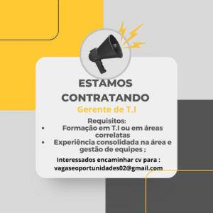 As vagas anunciadas e disponibilizadas neste site são repassadas por responsabilidade da empresa ou representante do RH. Não possuímos quaisquer vínculos com a empresa ou o anunciante. Temos o único objetivo de repassar para a população o benefício de visitar gratuitamente o nosso site, com o intuito de alcançarem o tão sonhado emprego.
