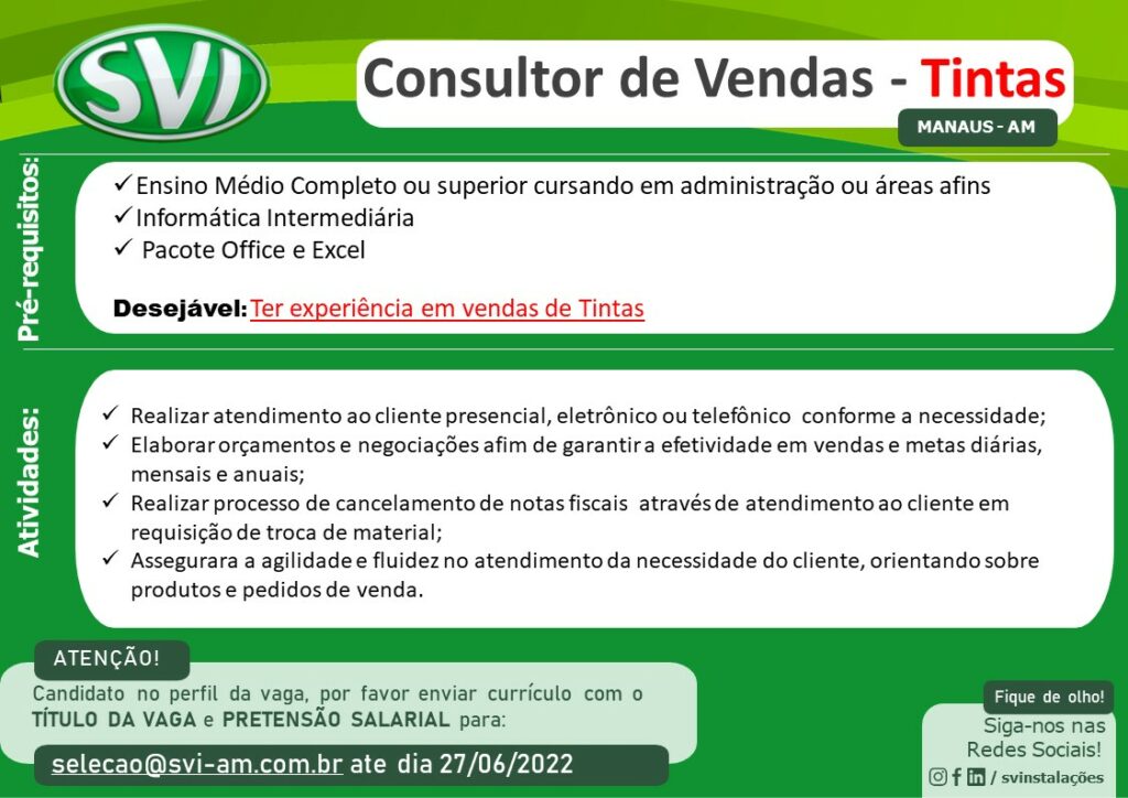 São diversas vagas para hoje…. – Emprego Day – AM