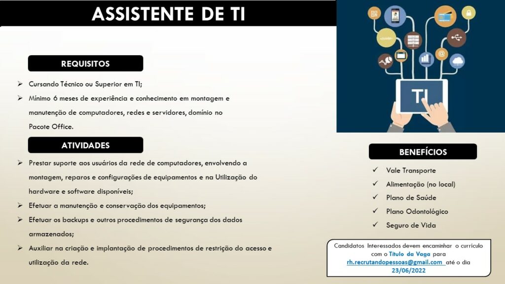 Mais informações sobre a vaga, somente por e-mail com os contratantes. Boa sorte !!!🍀