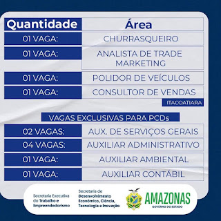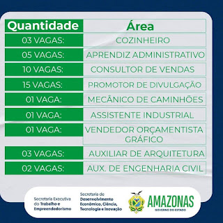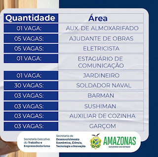 ✔️ O Sistema Nacional de Empregos do Amazonas (Sine/Am), divulga 158 vagas de emprego para esta quarta-feira (8).