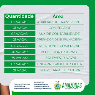 ✔️ Oportunidade de emprego pode aproveitar e enviar o currículo para uma das 166 vagas de emprego oferecidas pelo Sine Amazonas para esta segunda-feira (9).